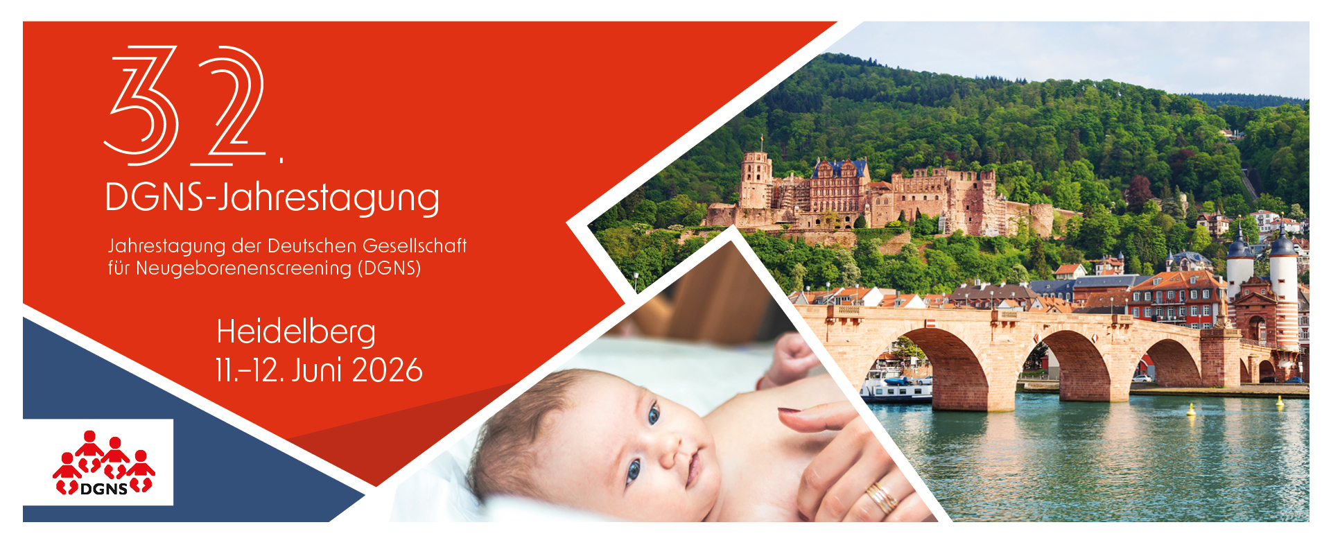 wir freuen uns sehr, Sie im Namen des Präsidiums zur 32. Jahrestagung der Deutschen Gesellschaft für Neugeborenenscreening (DGNS) am 11. und 12. Juni 2026 nach Heidelberg einzuladen!